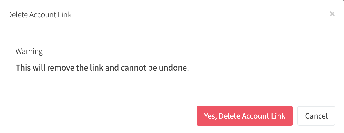 Either party, the Sub Account or Manager can immediately break the account link by clicking the delete (trash icon) button when viewing all Account Links. Deleting an account link will prevent any further access. There is no way to temporarily disable an account link, you can only delete it.